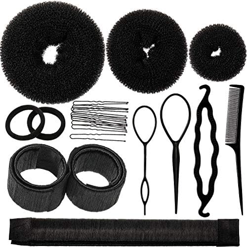 Hair Bun Shaper Set Include 3 Pieces Hair Bun Donut 2 Pieces Bun Marker 4 Pieces Ponytail Hair Tool 10 Pieces Bobby Pins And 2 Pieces Elastic Bands For Women Kids Hair